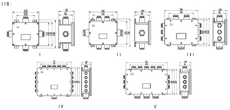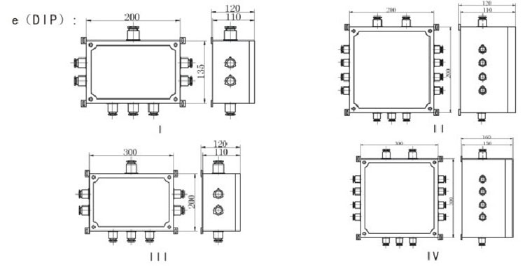 6、接線箱進線口規格常規為英制管螺紋,也可以根據用戶要求加工成公制螺紋或NPT等螺紋,但須在訂貨時備注。